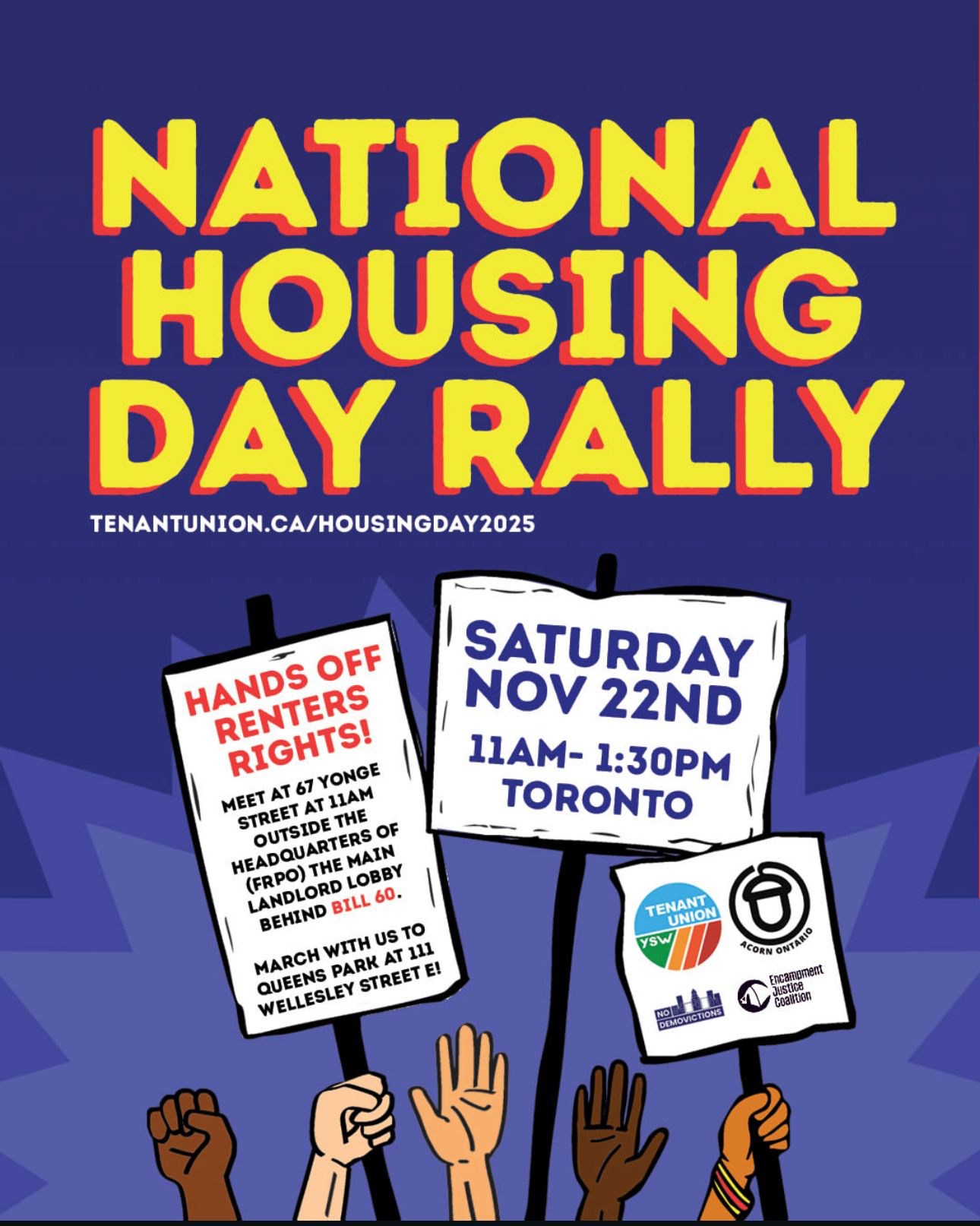 As part of this growing fight, tenants, housing advocates, food banks and community groups from across Ontario will be marching to Queen’s Park this Saturday for a National Housing Day rally against Bill 60. I encourage you to join.