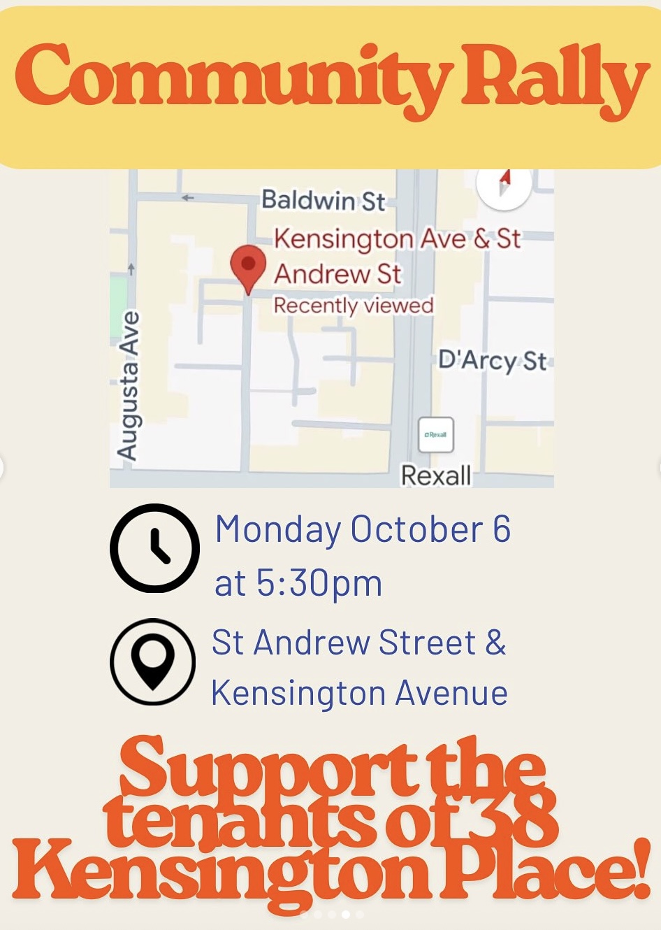 Join me, neighbours, and community members tonight at 5:30 PM at Kensington Ave & St. Andrew St. to stand with tenants and defend their right to a safe home. Hope to see you there. More information here.